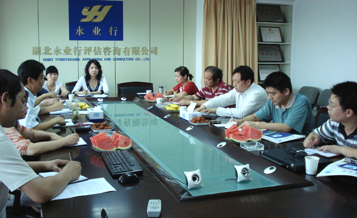 永业行董事长方国成对王局长一行的光临表示欢迎,总裁潘世炳介绍了永业行承担集约用地等研究项目的情况,提出了课题合作的有关思路和初步计划。国家土地督察武汉局调研处负责人石一连阐述了武汉城市圈用地政策研究课题的意义和主要内容,阐明了课题的研究方向,对课题资料收集、进度计划、职责分工、成果编制、成果验收、城市试点等有关情况提出了意见。