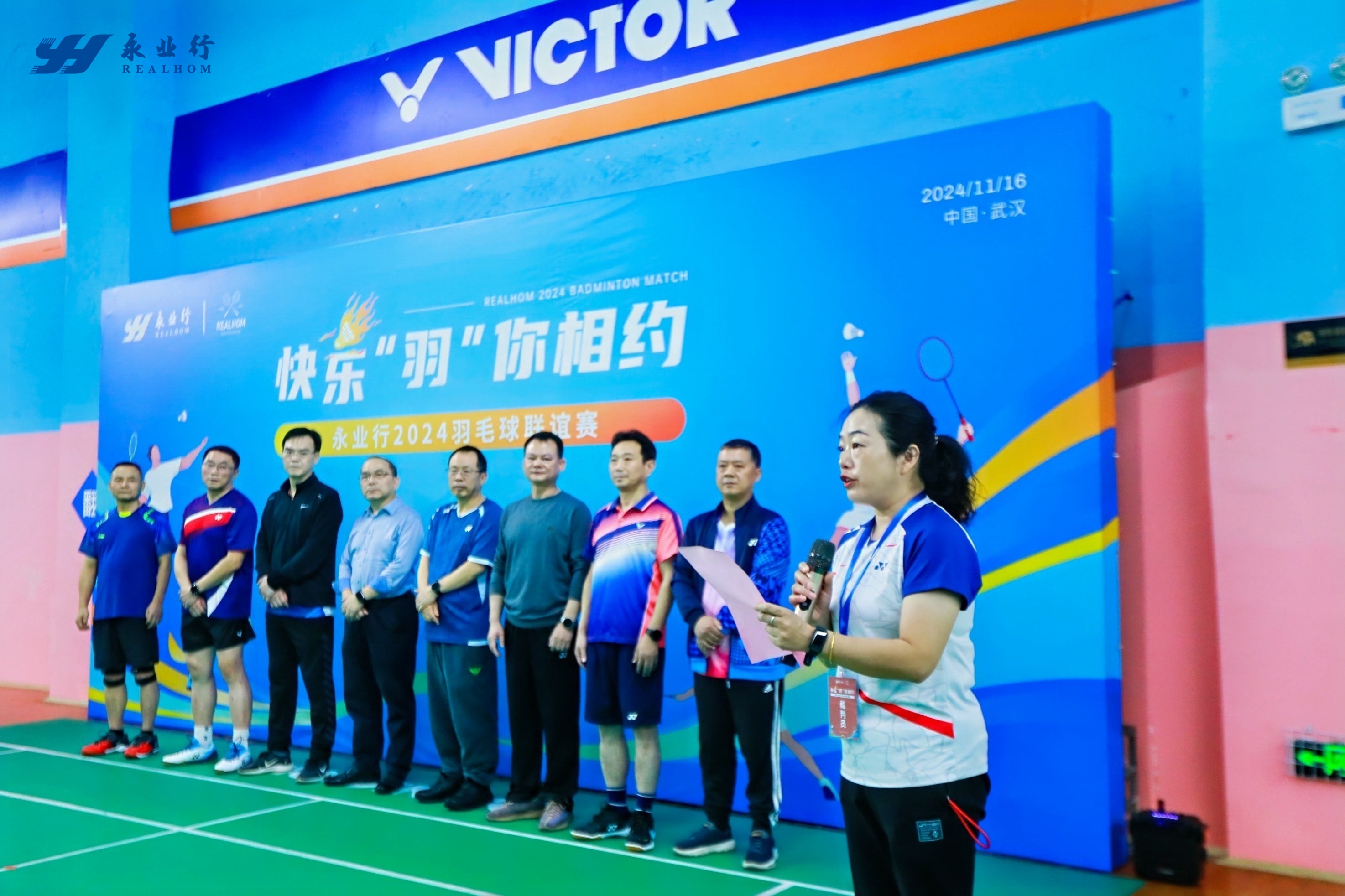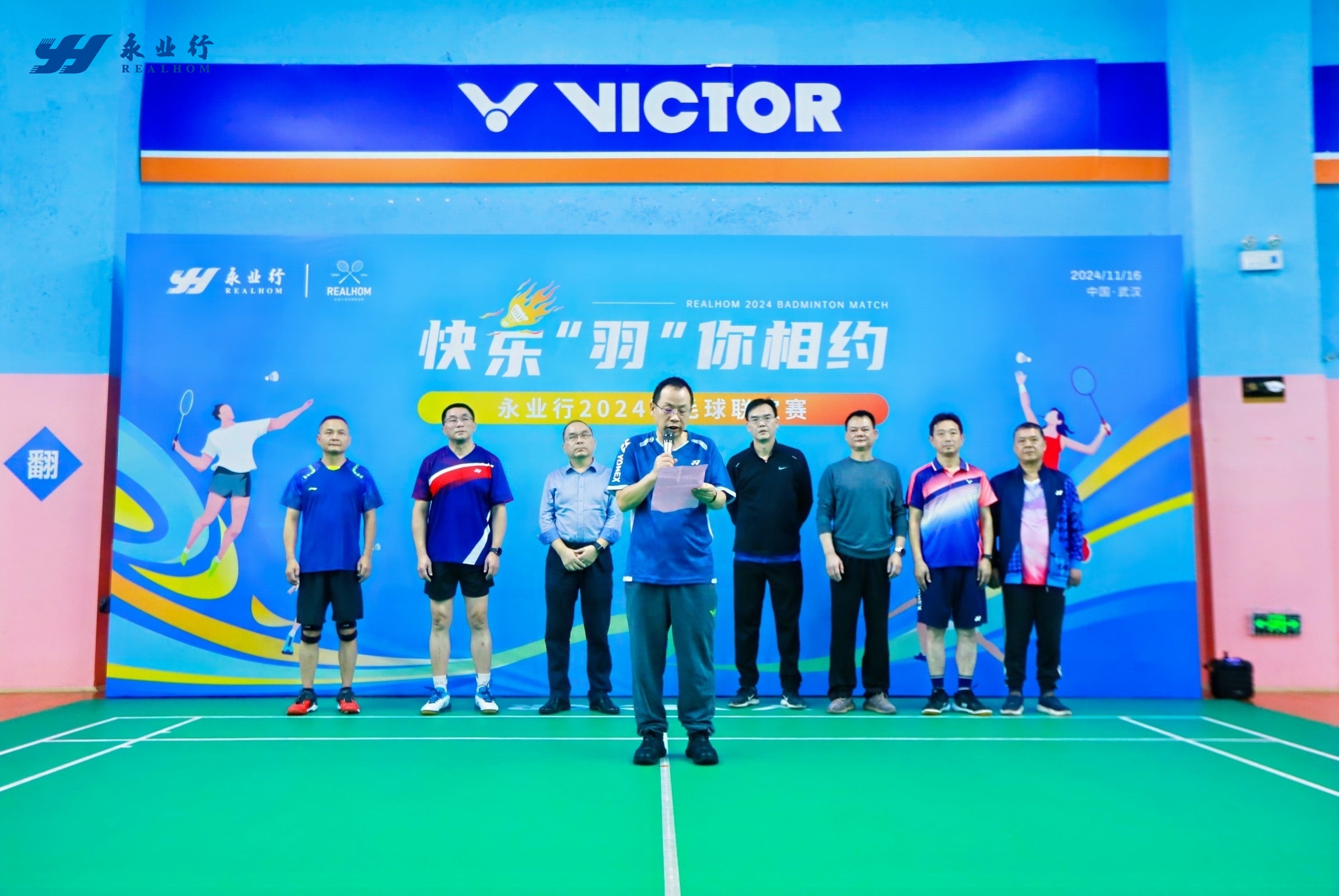 武昌区人大常委会主任胡太荣,区委常委、区政法委书记黄丰宙 ,区政协副主席陈烈,永业行董事长潘世炳等出席开幕式并讲话。16支激情洋溢、活力满满、火力全开的代表队,160余名羽毛球爱好者欢乐聚首,互搓球技、强身健体,共叙情谊、凝聚力量。